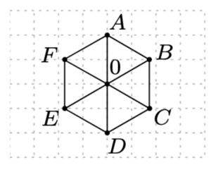 Soit l’hexagone centré $A B C D E F$ (centré en $O$) :
